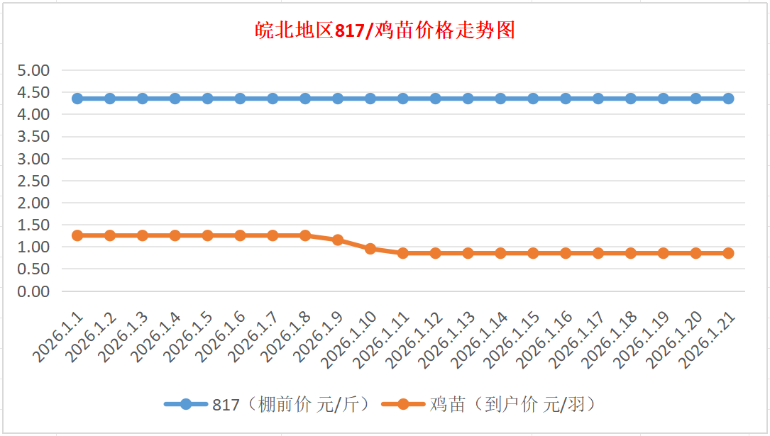鸡病专业网独家信息:2026年1月21日皖北地区817-麻鸡行情最新走势