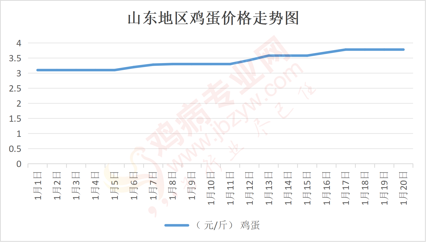 鸡病专业网消息:1月20日,山东地区莱阳鸡蛋3.8元/斤,稳;青岛鸡蛋3.8元/斤,稳;诸城鸡蛋3.8元/斤,稳;安丘鸡蛋3.75元/斤,稳;昌乐鸡蛋3.75元/斤,稳;寿光鸡蛋3.75元/斤,稳;昌邑鸡蛋3.75元/斤,稳;高密鸡蛋3.8元/斤,稳;青州鸡蛋3.75元/斤,稳;临朐鸡蛋3.75元/斤,稳;莱州鸡蛋3.8元/斤,稳;威海鸡蛋3.8元/斤,稳;临沭鸡蛋3.75元/斤,稳;沂水鸡蛋3.75元/斤,稳;沂南鸡蛋3.75元/斤,稳;莒南鸡蛋3.75元/斤,稳;兰陵县鸡蛋3.75元/斤,稳;日照鸡蛋3.75元/斤,稳;莒县鸡蛋3.75元/斤,稳;日照辛萁商贸鸡蛋3.75元/斤,稳;泗水鸡蛋价格111元/30斤,稳;济宁、汶上鸡蛋价格111元/30斤,稳;梁山、东平红蛋价格111元/30斤,稳;枣庄滕州地区鸡蛋混码主流到户112元/30斤,稳;泰安地区新泰鸡蛋价格111元/30斤,稳;菏泽地区曹县主流到户111元/30斤,稳;成武鸡蛋价格111元/30斤,稳;单县到户111元/30斤,稳;聊城莘县111元/30斤,稳;莱芜鸡蛋167元/45斤,稳;济南鸡蛋167元/45斤,稳;德州鸡蛋148元/40斤,稳;滨州鸡蛋148元/40斤,稳。