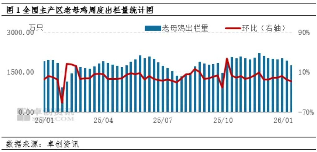 2026年初蛋鸡市场变局:1月养殖惜售情绪持续发酵,老母鸡出栏量环比压缩超预期;2月春节前集中出栏窗口开启,叠加寒假及企业放假致需求转淡,蛋鸡行业去产进程或显著提速,为全年产能优化奠定基调。