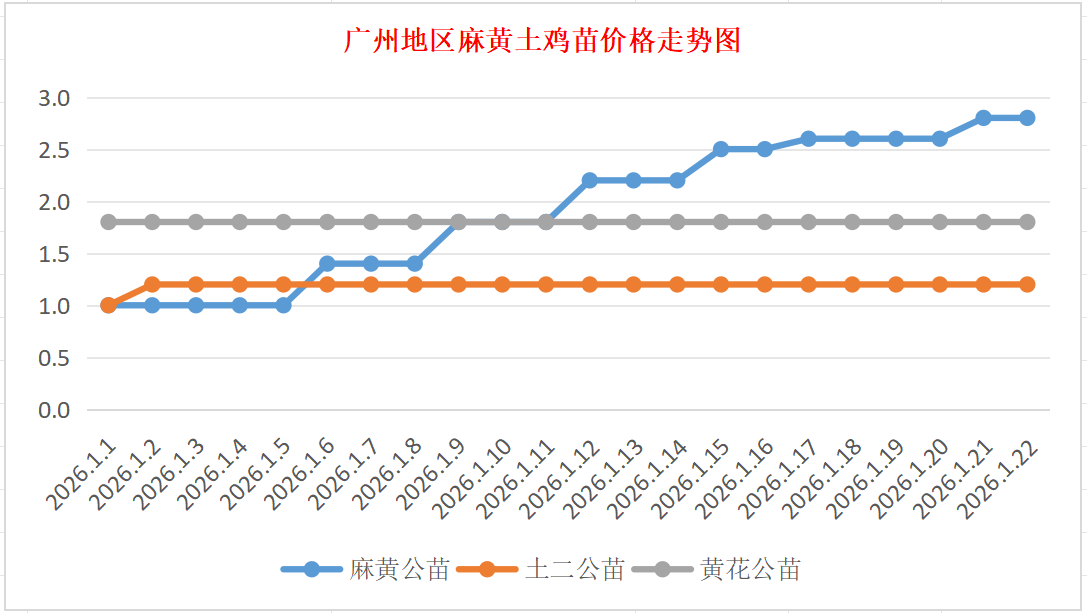 1月22日广州地区麻、黄、土鸡苗价格行情