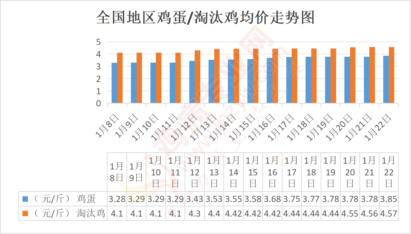 1月22日我国部分地区鸡蛋、淘汰鸡价格汇总