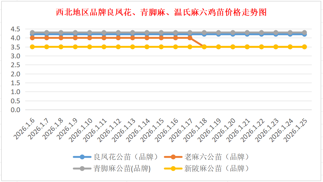 品牌新陂麻:价格稳定,到户价公苗4.50元/羽,稳。