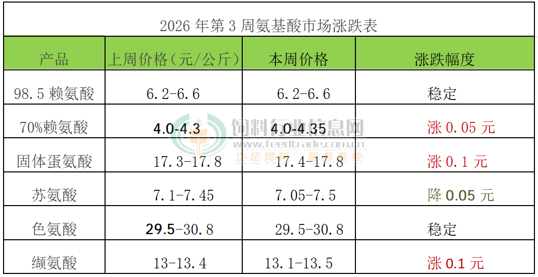 2026年第3周氨基酸市场动态