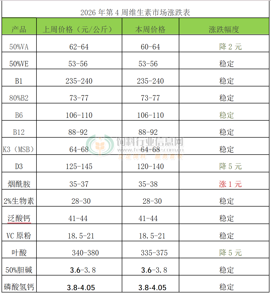 2026年第4周维生素市场动态