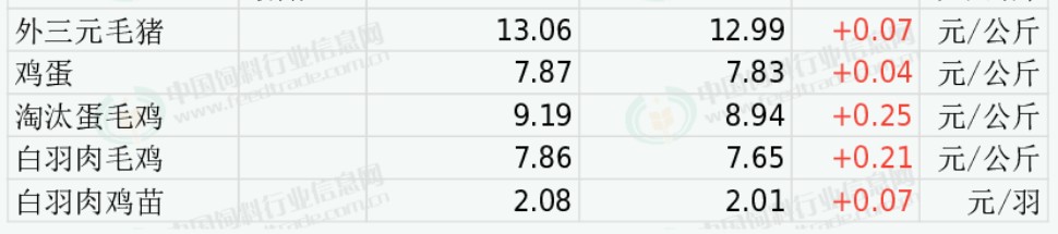 白羽肉毛鸡价格上涨。当前毛鸡供应整体稳定且主产区略有缺口,鸡苗因出苗量增加、养殖户补栏谨慎供大于求,节前终端备货加快带动白条鸡和冻品走货略有改善,短期预计毛鸡价格震荡调整。今日主产区山东白羽肉毛鸡均价7.53元/公斤,较昨日价格上涨0.20;辽宁均价7.95元/公斤,较昨日价格上涨0.20;主销区江苏均价8.64元/公斤,较昨日价格上涨0.22。