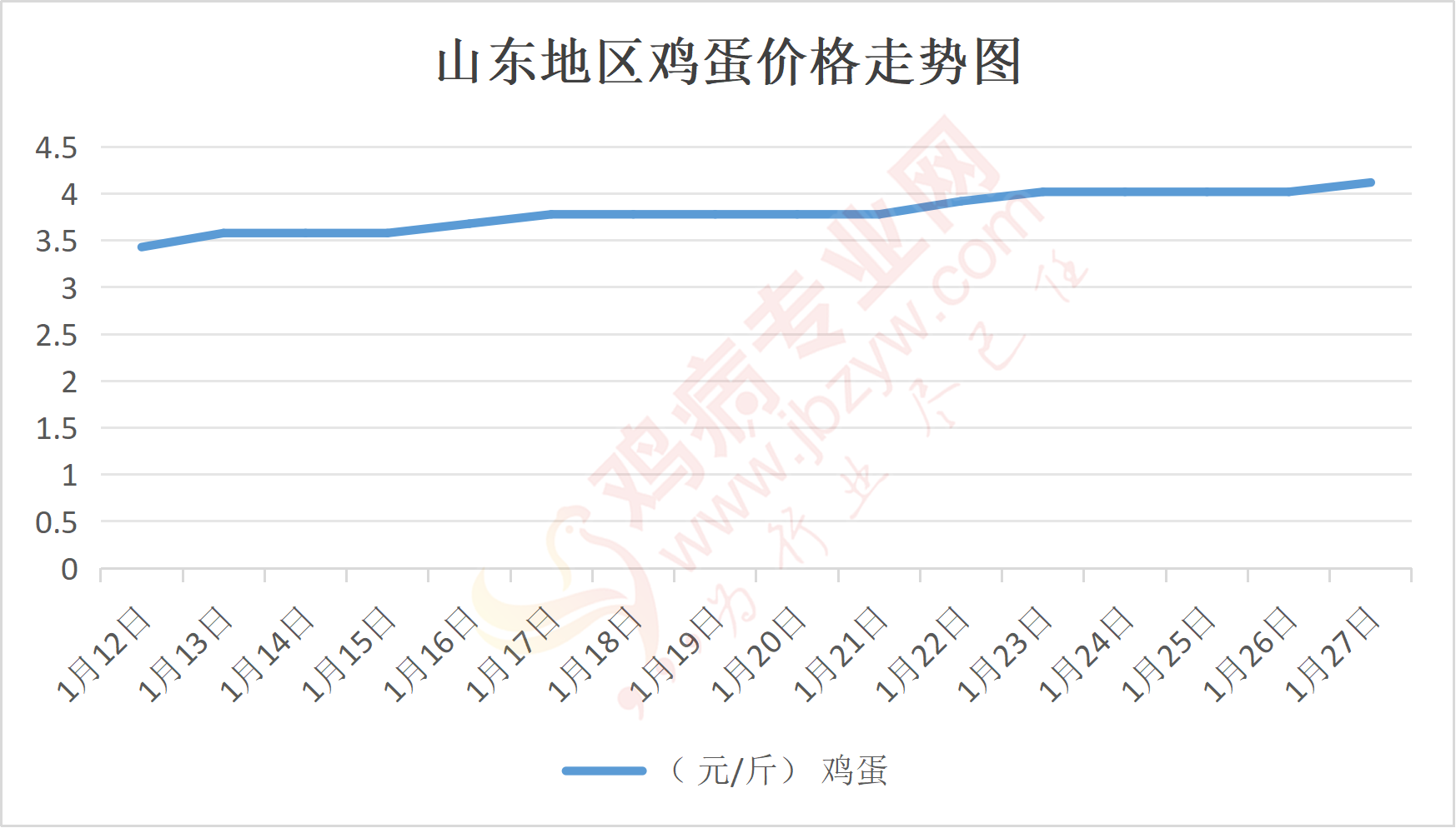 鸡病专业网消息:1月27日,山东地区莱阳鸡蛋4.1元/斤,涨;青岛鸡蛋4.1元/斤,涨;诸城鸡蛋4.15元/斤,涨;安丘鸡蛋4.1元/斤,涨;昌乐鸡蛋4.1元/斤,涨;寿光鸡蛋4.1元/斤,涨;昌邑鸡蛋4.1元/斤,涨;高密鸡蛋4.15元/斤,涨;青州鸡蛋4.1元/斤,涨;临朐鸡蛋4.1元/斤,涨;莱州鸡蛋4.1元/斤,涨;威海鸡蛋4.1元/斤,涨;临沭鸡蛋4.1元/斤,涨;沂水鸡蛋4.1元/斤,涨;沂南鸡蛋4.1元/斤,涨;莒南鸡蛋4.1元/斤,涨;兰陵县鸡蛋4.1元/斤,涨;日照鸡蛋4.1元/斤,涨;莒县鸡蛋4.1元/斤,涨;日照辛萁商贸鸡蛋4.1元/斤,涨;泗水鸡蛋价格120元/30斤,涨;济宁、汶上鸡蛋价格120元/30斤,涨;梁山、东平红蛋价格120元/30斤,涨;枣庄滕州地区鸡蛋混码主流到户121元/30斤,涨;泰安地区新泰鸡蛋价格120元/30斤,涨;菏泽地区曹县主流到户120元/30斤,涨;成武鸡蛋价格120元/30斤,涨;单县到户120元/30斤,涨;聊城莘县120元/30斤,涨;莱芜鸡蛋180元/45斤,涨;济南鸡蛋180元/45斤,涨;德州鸡蛋160元/40斤,涨;滨州鸡蛋160元/40斤,涨。