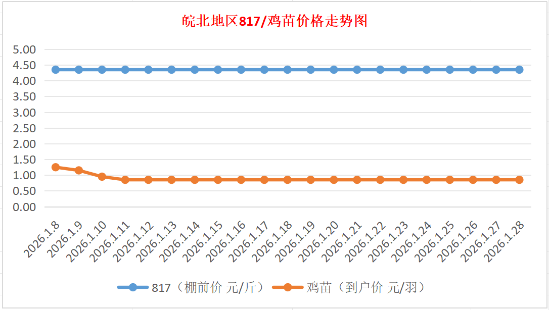 皖北地区817/鸡苗价格走势图(来源:鸡病专业网)