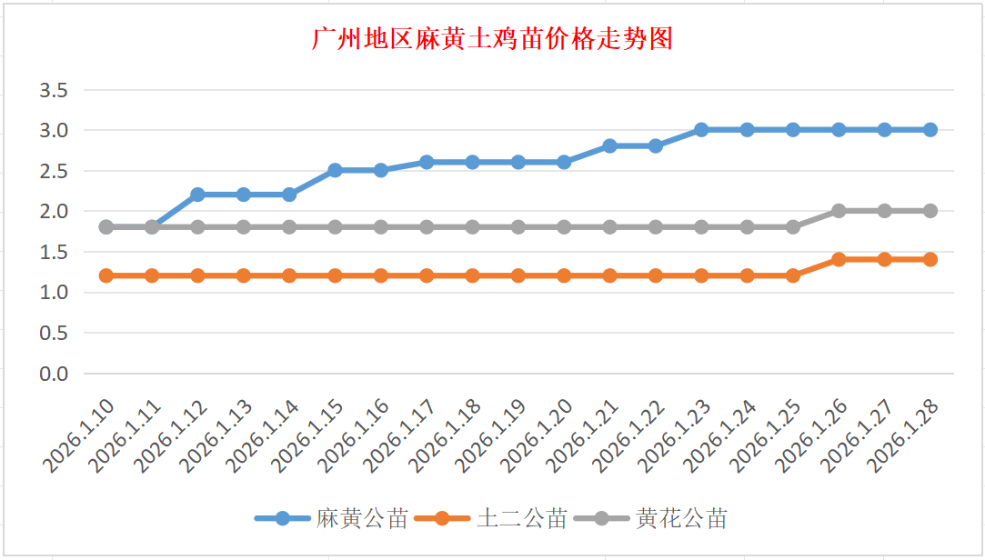 1月28日广州地区麻、黄、土鸡苗价格行情