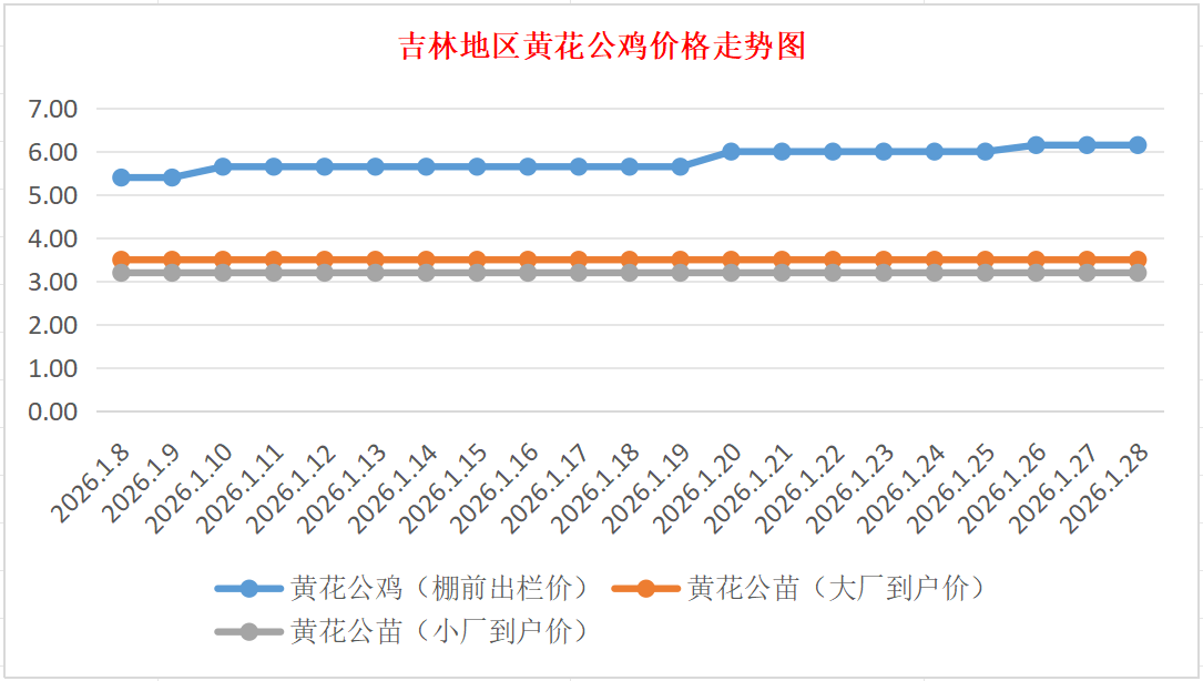 1月28日吉林黄花公鸡、鸡苗价格行情