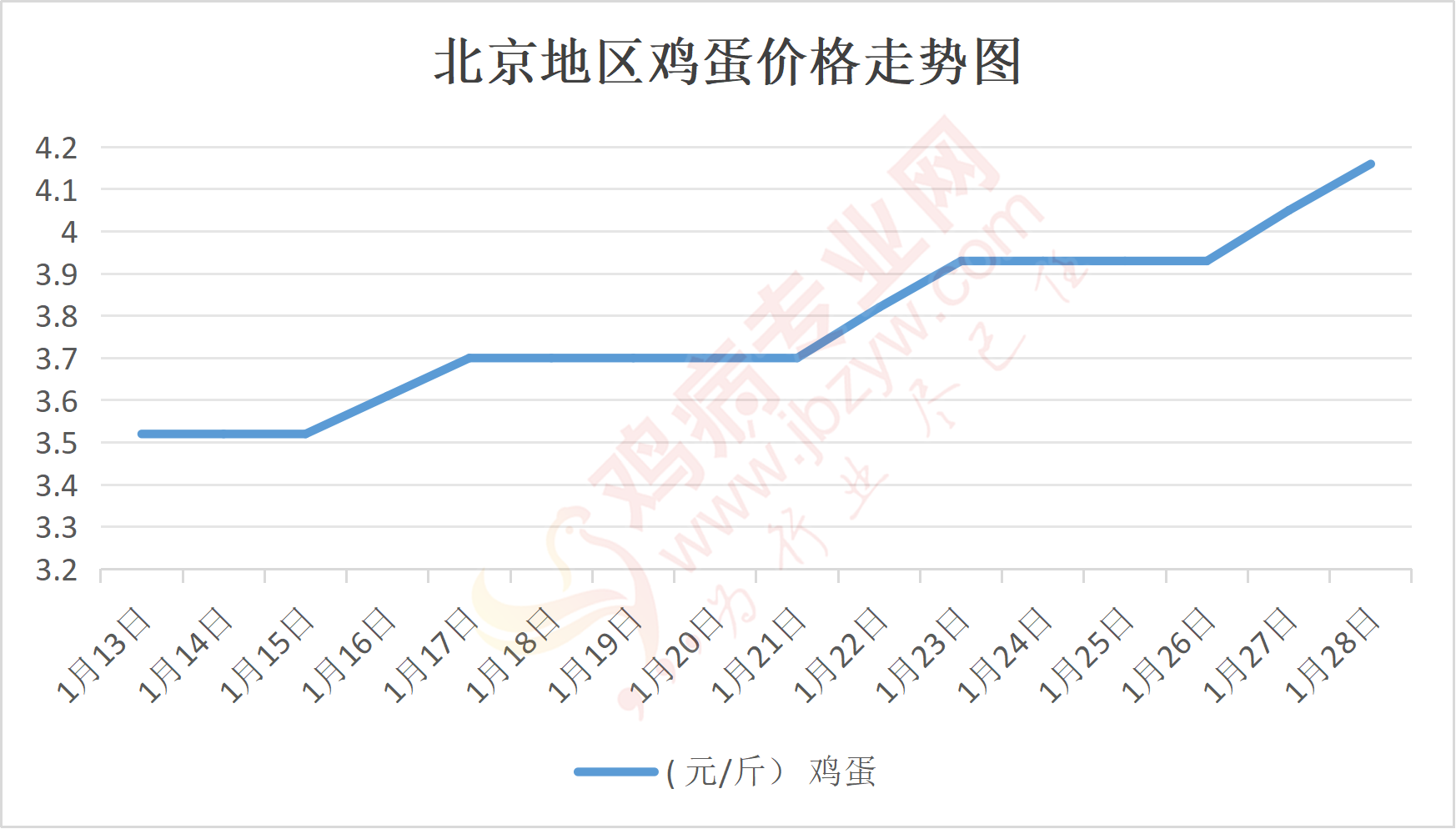 鸡病专业网消息:1月28日,北京大洋路鸡蛋主流批发价格183-184元/44斤,涨,到货3台车,成交灵活,走货一般;回龙观鸡蛋183元/44斤,涨;顺义石门鸡蛋183元/44斤,涨。