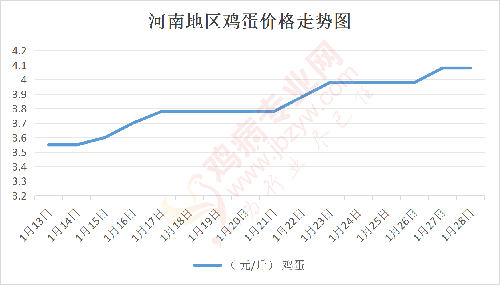 鸡病专业网消息:1月28日,河南郑州鸡蛋4.1元/斤,稳;新密鸡蛋4.1元/斤,稳;荥阳鸡蛋4.1元/斤,稳;中牟鸡蛋4.1元/斤,稳;周口鸡蛋4.1元/斤,稳;商丘鸡蛋121元/30斤,稳;鹤壁鸡蛋4.1元/斤,稳;汝州鸡蛋4.1元/斤,稳;开封鸡蛋121元/30斤,稳;漯河鸡蛋4.05元/斤,稳;漯河临颍鸡蛋4.1元/斤,稳;许昌鸡蛋4.1元/斤,稳;南阳鸡蛋4.1元/斤,稳;南阳邓州鸡蛋4.1元/斤,稳;新乡鸡蛋4.05元/斤,稳;安阳鸡蛋4.05元/斤,稳;新郑鸡蛋4.1元/斤,稳;登封鸡蛋4.1元/斤,稳;平顶山鸡蛋4.1元/斤,稳;驻马店鸡蛋4.05元/斤,稳;三门峡鸡蛋4.1元/斤,稳;焦作鸡蛋4.1元/斤,稳;信阳鸡蛋4.05元/斤,稳;濮阳鸡蛋4.05元/斤,稳。