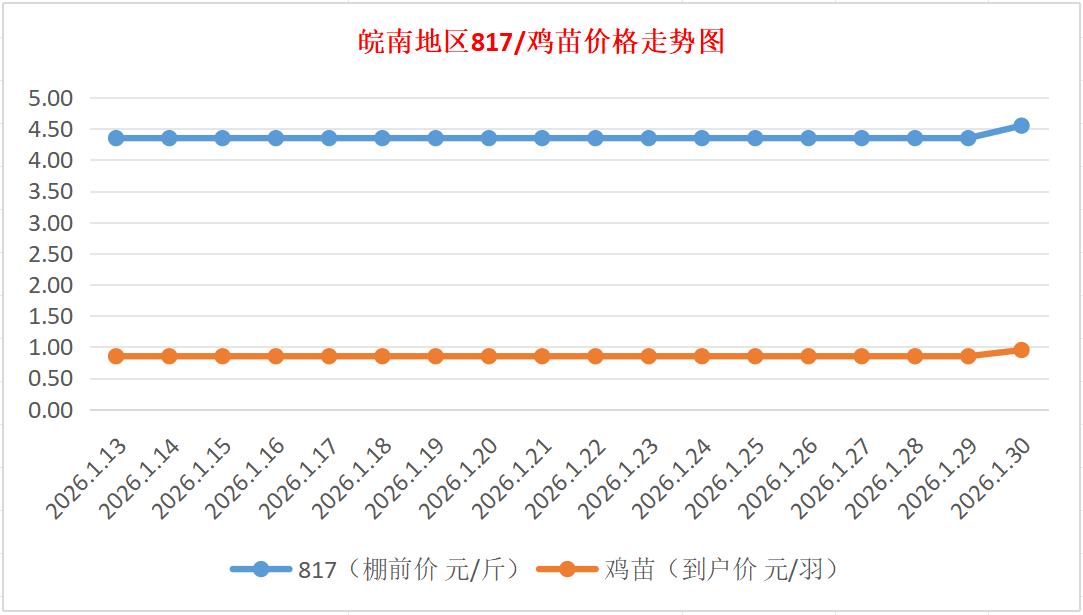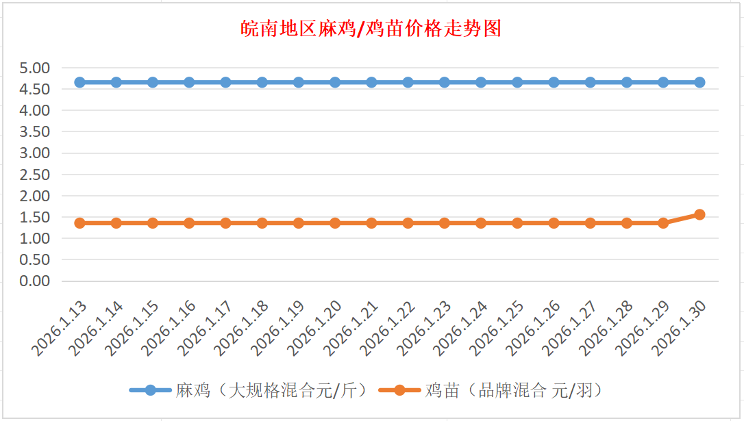 鸡病专业网独家信息:2026年1月30日皖南地区817-麻鸡行情最新走势