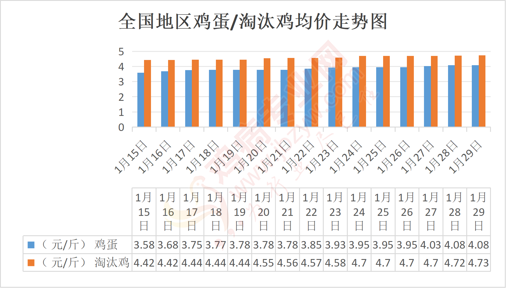 1月29日我国部分地区鸡蛋、淘汰鸡价格汇总