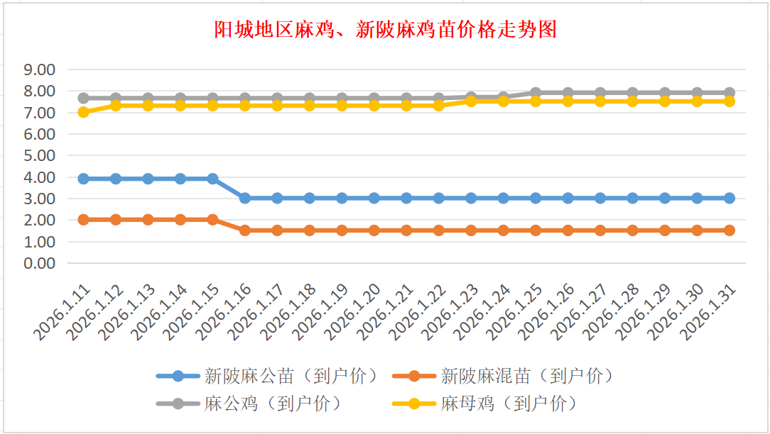 阳城地区麻鸡、新陂麻鸡苗价格走势图(来源:鸡病专业网)