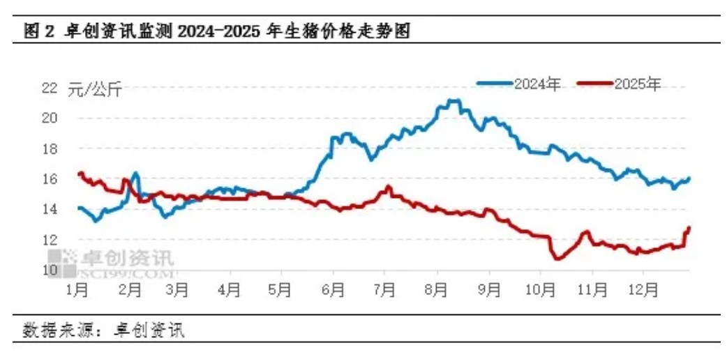 从数据分析,2026年元月初,猪价短暂冲高至12.77元/公斤,元旦节后降至12.46元/公斤!不过,由于上月末,集团猪企出栏超计划,供应压力减轻,适重中大猪出栏“断档”,本月初,市场挺价心态偏浓,集团猪企以缩量为主,国内猪价重心上移,月内,标猪报价回升至13.16元/公斤!可惜,进入中下旬以来,猪价上涨“后劲不足”,市场呈现惯性下降的走势,最新反馈标猪报价在12.68元/公斤,高点回落幅度在0.48元/公斤!