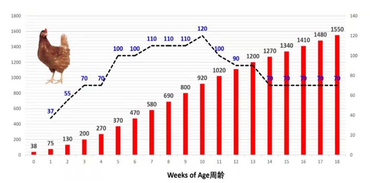 同时,青年期也是免疫与生殖系统的重要奠基期:4-8周龄完成免疫器官主要发育,5周龄体重达标度直接影响产蛋期抗病力与死淘率;13-18周龄生殖系统逐步启动,其调控质量直接决定开产日龄与产蛋高峰爬升速度。