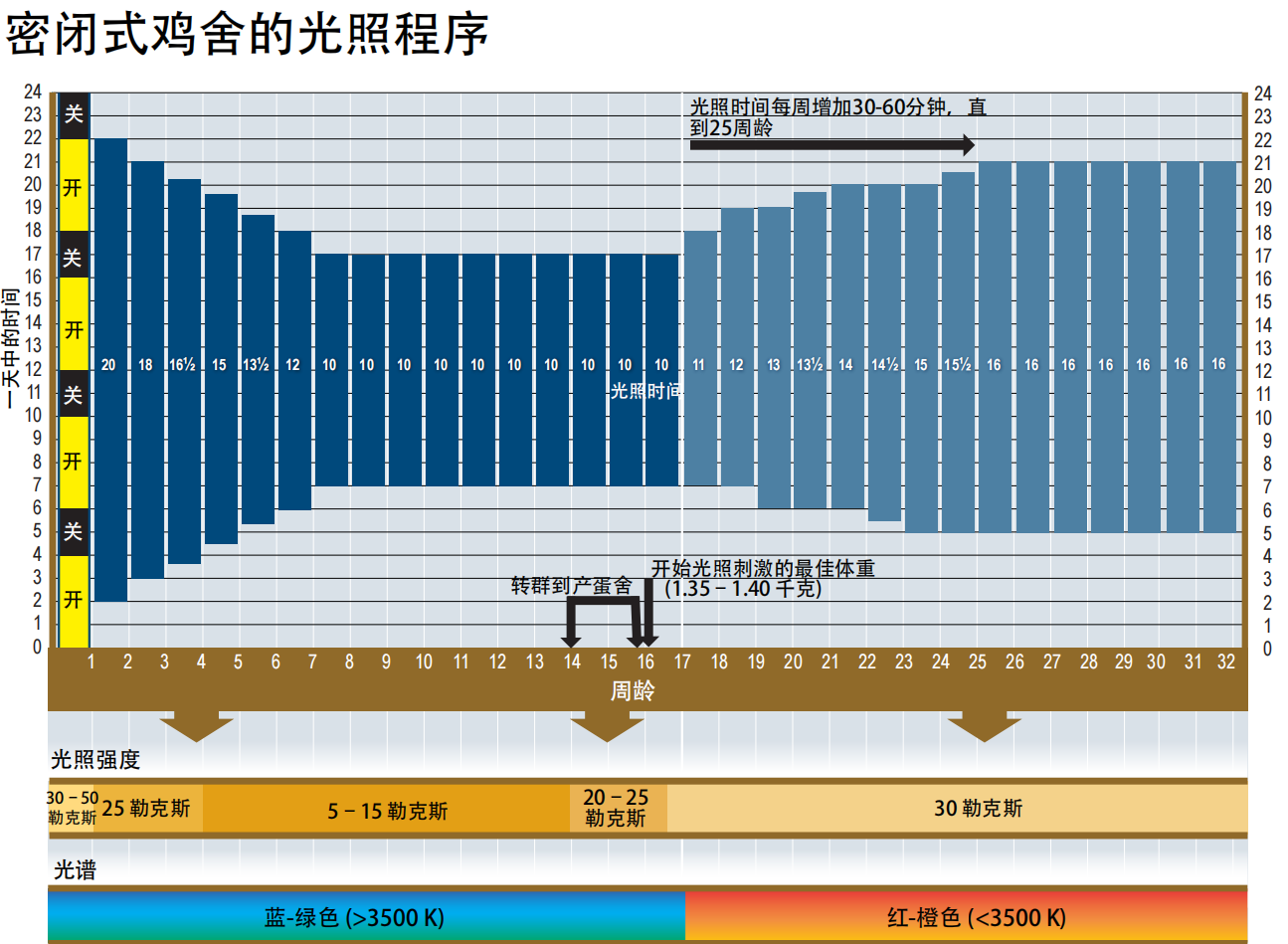 长期长光照或光照骤变会打乱鸡群生理节律,使其对开产光刺激不敏感,导致开产异常、产蛋周期紊乱,高峰持续时间缩短。