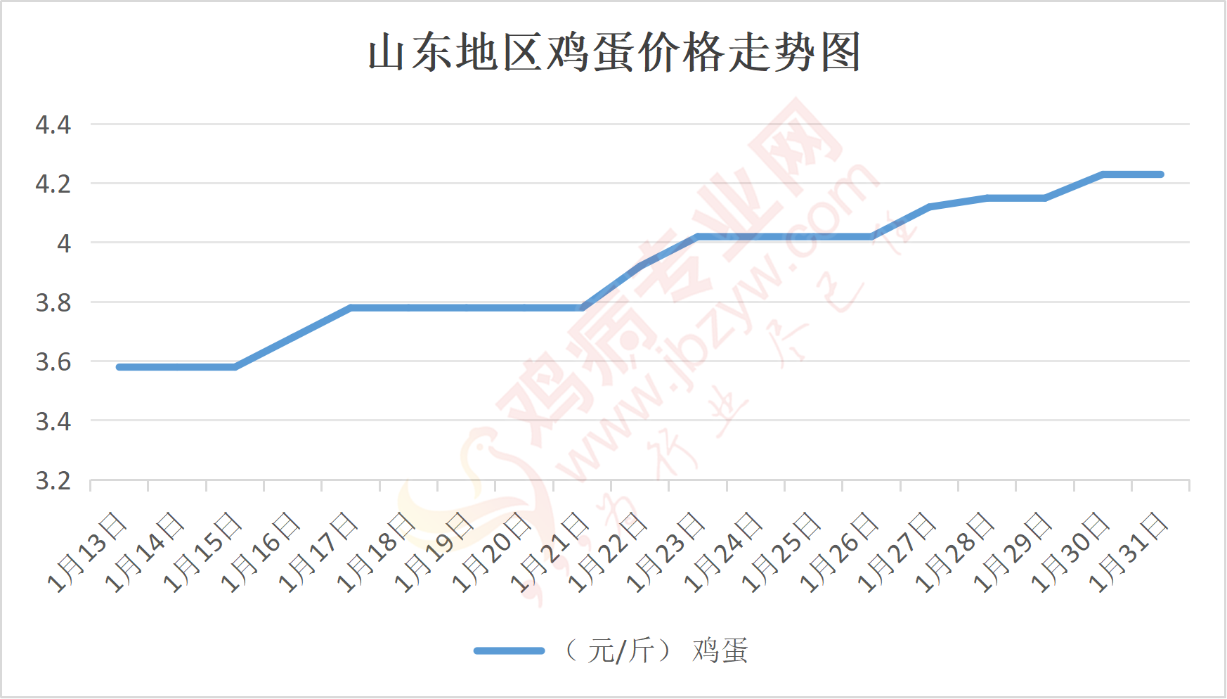 鸡病专业网消息:1月31日,山东地区莱阳鸡蛋4.25元/斤,稳;青岛鸡蛋4.25元/斤,稳;诸城鸡蛋4.3元/斤,稳;安丘鸡蛋4.2元/斤,稳;昌乐鸡蛋4.2元/斤,稳;寿光鸡蛋4.2元/斤,稳;昌邑鸡蛋4.2元/斤,稳;高密鸡蛋4.3元/斤,稳;青州鸡蛋4.2元/斤,稳;临朐鸡蛋4.2元/斤,稳;莱州鸡蛋4.25元/斤,稳;威海鸡蛋4.25元/斤,稳;临沭鸡蛋4.15元/斤,稳;沂水鸡蛋4.15元/斤,稳;沂南鸡蛋4.15元/斤,稳;莒南鸡蛋4.15元/斤,稳;兰陵县鸡蛋4.15元/斤,稳;日照鸡蛋4.15元/斤,稳;莒县鸡蛋4.15元/斤,稳;日照辛萁商贸鸡蛋4.15元/斤,稳;泗水鸡蛋价格123元/30斤,稳;济宁、汶上鸡蛋价格123元/30斤,稳;梁山、东平红蛋价格123元/30斤,稳;枣庄滕州地区鸡蛋混码主流到户124元/30斤,稳;泰安地区新泰鸡蛋价格123元/30斤,稳;菏泽地区曹县主流到户123元/30斤,稳;成武鸡蛋价格123元/30斤,稳;单县到户123元/30斤,稳;聊城莘县123元/30斤,稳;莱芜鸡蛋185元/45斤,稳;济南鸡蛋185元/45斤,稳;德州鸡蛋164元/40斤,稳;滨州鸡蛋164元/40斤,稳。