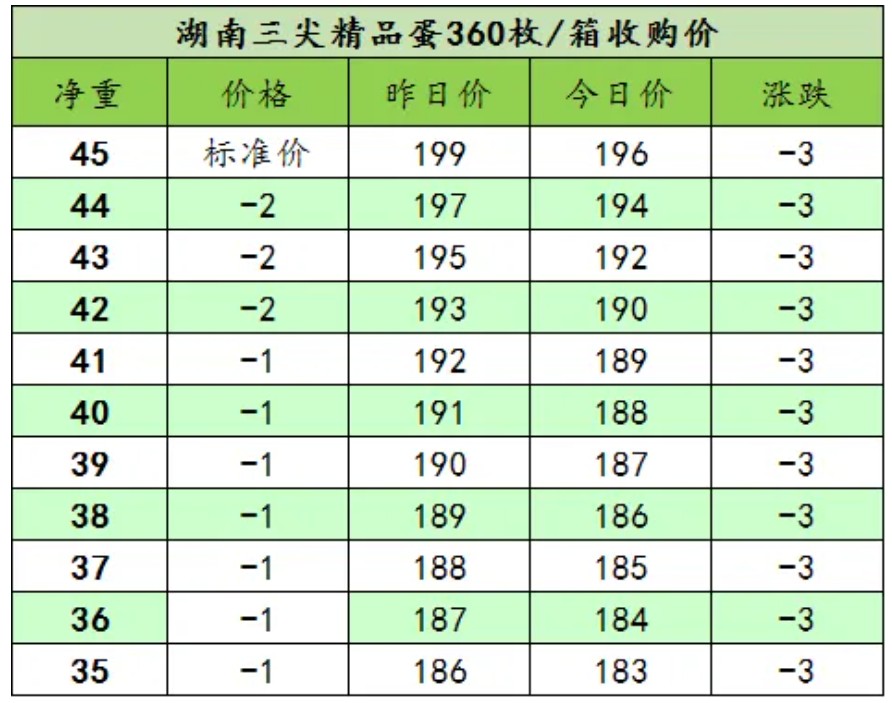 1月31日湖南三尖农牧鸡蛋报价