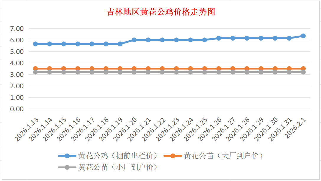 2月1日吉林黄花公鸡、鸡苗价格行情