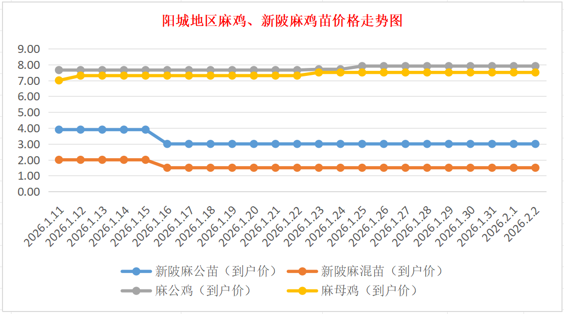 阳城地区麻鸡、新陂麻鸡苗价格走势图(来源:鸡病专业网)