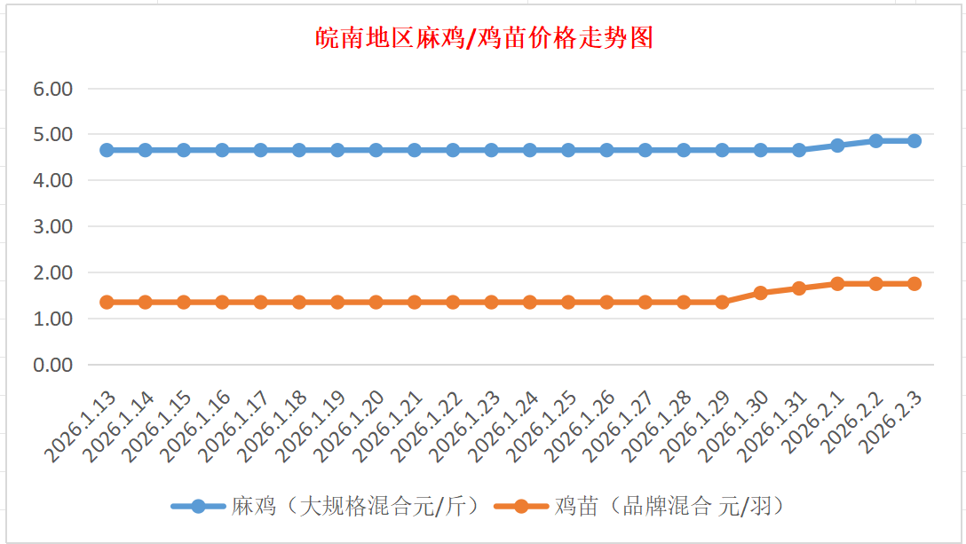 鸡病专业网独家信息:2026年2月3日皖南地区817-麻鸡行情最新走势