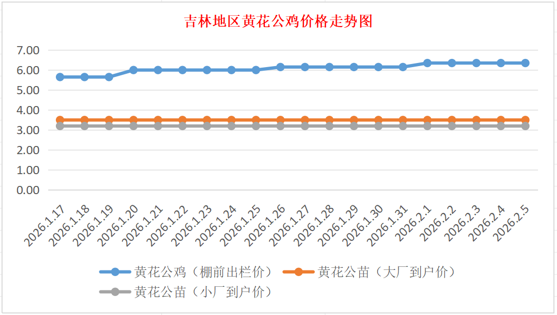 2月5日吉林黄花公鸡、鸡苗价格行情