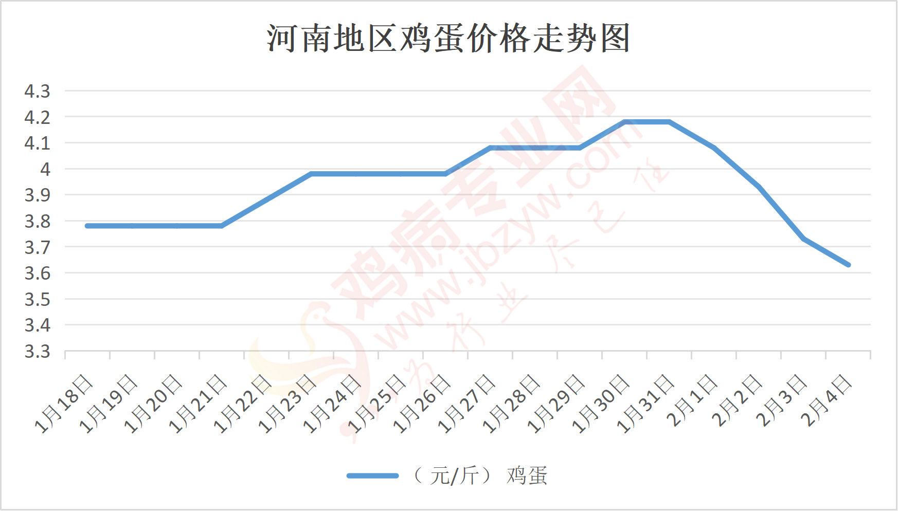 鸡病专业网消息:2月4日,河南郑州鸡蛋3.65元/斤,落;新密鸡蛋3.65元/斤,落;荥阳鸡蛋3.65元/斤,落;中牟鸡蛋3.65元/斤,落;周口鸡蛋3.6-3.65元/斤,落;商丘鸡蛋108元/30斤,落;鹤壁鸡蛋3.65元/斤,落;汝州鸡蛋3.65元/斤,落;开封鸡蛋108元/30斤,落;漯河鸡蛋3.6-3.65元/斤,落;漯河临颍鸡蛋3.65-3.65元/斤,落;许昌鸡蛋3.6-3.65元/斤,落;南阳鸡蛋3.65元/斤,落;南阳邓州鸡蛋3.65元/斤,落;新乡鸡蛋3.6元/斤,落;安阳鸡蛋3.6元/斤,落;新郑鸡蛋3.65元/斤,落;登封鸡蛋3.65元/斤,落;平顶山鸡蛋3.65元/斤,落;驻马店鸡蛋3.65-3.7元/斤,落;三门峡鸡蛋3.65元/斤,落;焦作鸡蛋3.65元/斤,落;信阳鸡蛋3.6-3.65元/斤,落;濮阳鸡蛋3.6元/斤,落。