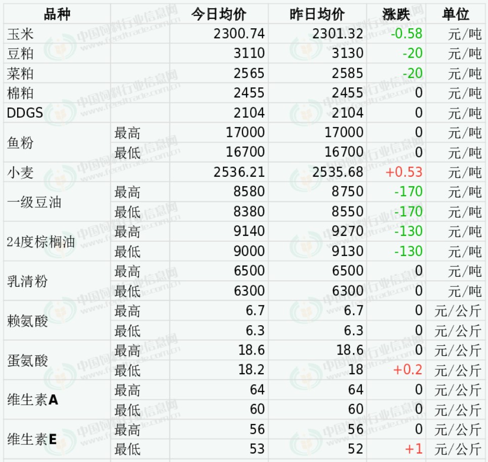 2026年2月3日国内饲料原料行情汇总