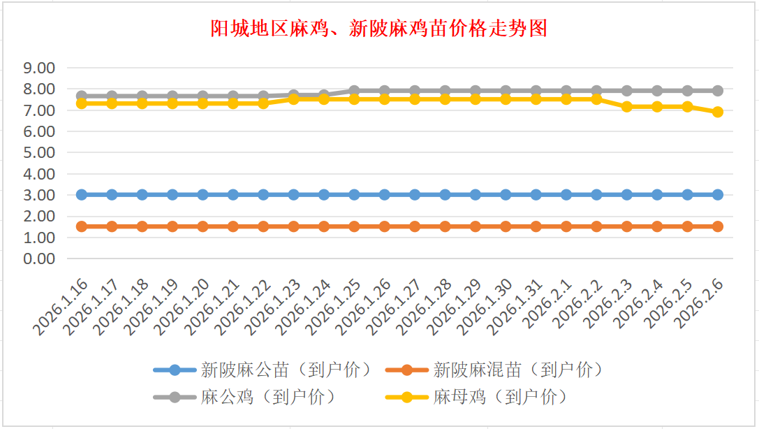阳城地区麻鸡、新陂麻鸡苗价格走势图(来源:鸡病专业网)