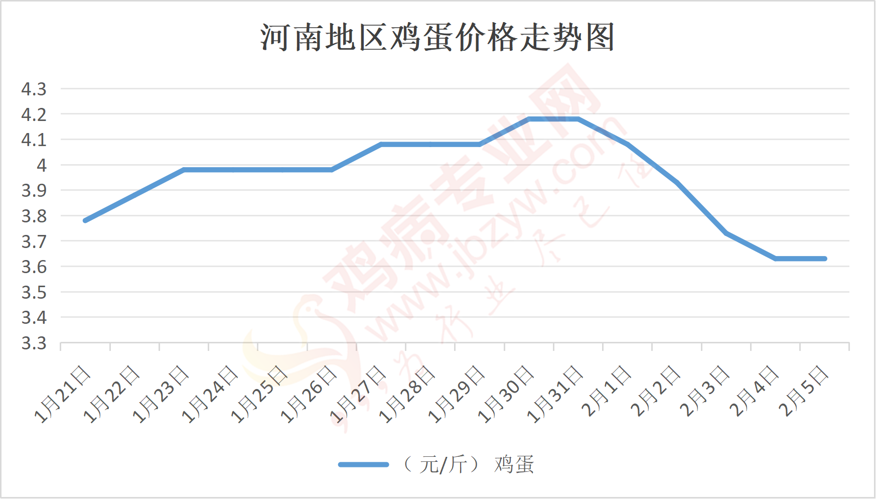 鸡病专业网消息:2月5日,河南郑州鸡蛋3.65元/斤,稳;新密鸡蛋3.65元/斤,稳;荥阳鸡蛋3.65元/斤,稳;中牟鸡蛋3.65元/斤,稳;周口鸡蛋3.6-3.65元/斤,稳;商丘鸡蛋108元/30斤,稳;鹤壁鸡蛋3.5-3.6元/斤,稳;汝州鸡蛋3.65元/斤,稳;开封鸡蛋108元/30斤,稳;漯河鸡蛋3.6-3.65元/斤,稳;漯河临颍鸡蛋3.65-3.65元/斤,稳;许昌鸡蛋3.6-3.65元/斤,稳;南阳鸡蛋3.65元/斤,稳;南阳邓州鸡蛋3.65元/斤,稳;新乡鸡蛋3.6元/斤,稳;安阳鸡蛋3.6元/斤,稳;新郑鸡蛋3.65元/斤,稳;登封鸡蛋3.65元/斤,稳;平顶山鸡蛋3.65元/斤,稳;驻马店鸡蛋3.65-3.7元/斤,稳;三门峡鸡蛋3.65元/斤,稳;焦作鸡蛋3.65元/斤,稳;信阳鸡蛋3.6-3.65元/斤,稳;濮阳鸡蛋3.6元/斤,稳。