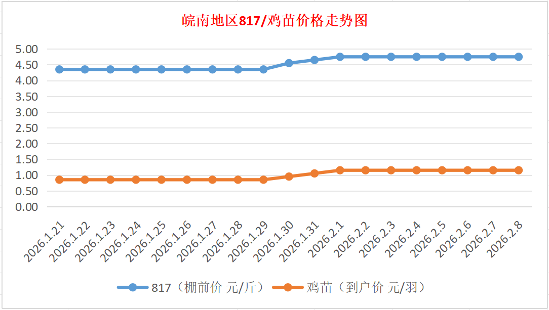 鸡病专业网独家信息:2026年2月8日皖南地区817-麻鸡行情最新走势