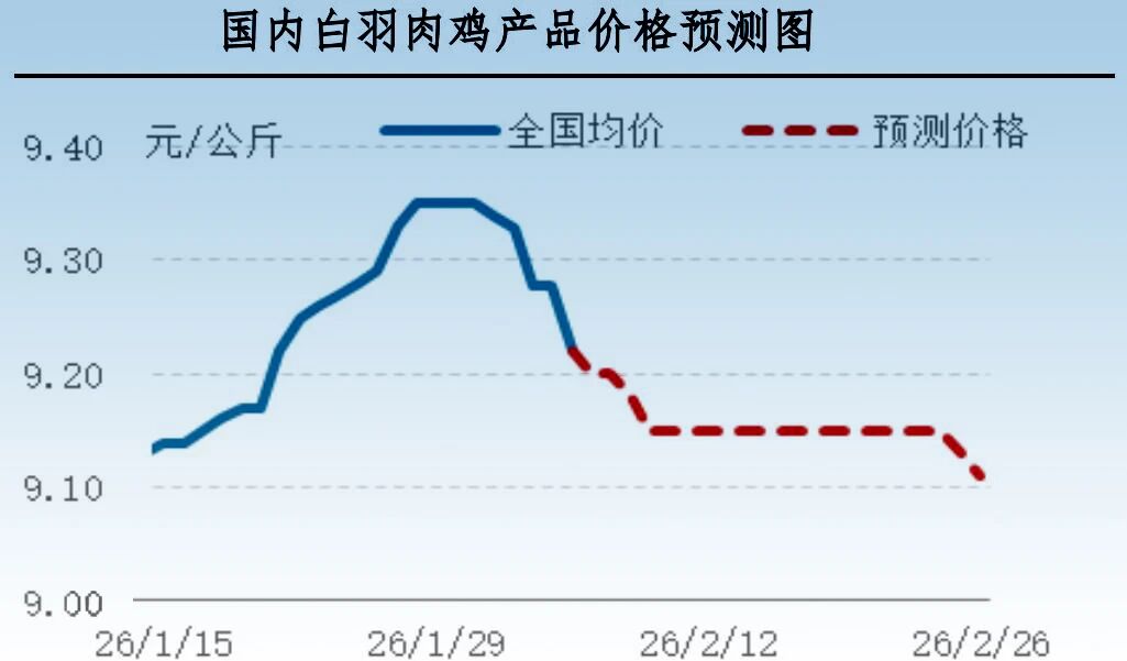 2月12日(腊月二十五日)以后,多数企业陆续放假,市场或多处无价无市状态,价格延续前期收盘价格。节后正月初七(2月23日)开始,企业陆续恢复生产,但节后企业复工企业宰杀量有限,叠加鸡源供应不多,供需两淡,鸡价或延续前期收盘价格。预计未来三周鸡价或走稳。