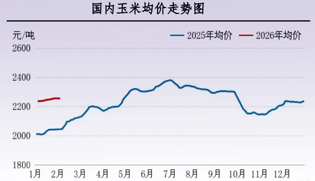 本周全国各区域玉米价格涨跌稳均有,均价小幅上涨。春节假期临近,市场走势不一,整体来看供应略有增量而需求端在经过一段时间的节前备货后采购积极性略下滑,市场情绪略转弱,局部价格松动。东北、南方销区行情联动,东北产区价格略有下跌,销区市场跟随下滑。华北、西北地区玉米价格上涨10-20元/吨,因下游的备货需求以及基层惜售导致贸易商收购价格上涨。