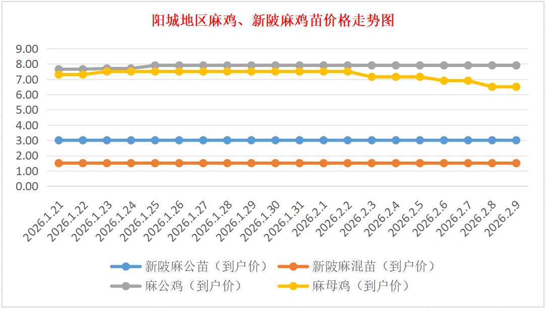 阳城地区麻鸡、新陂麻鸡苗价格走势图(来源:鸡病专业网)