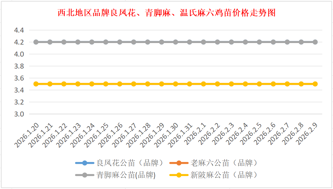 品牌新陂麻:价格稳定,到户价公苗4.50元/羽,稳。