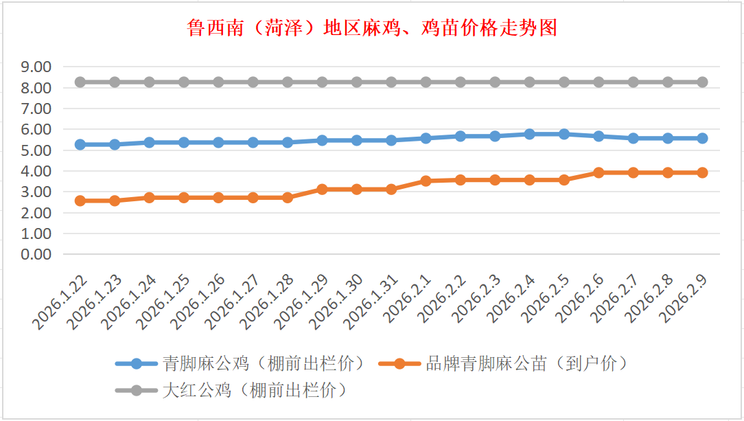 2月9日鲁西南(菏泽)地区麻鸡、鸡苗价格行情