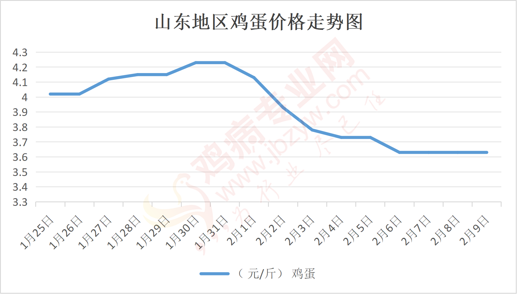 鸡病专业网消息:2月9日,山东地区莱阳鸡蛋3.65元/斤,稳;青岛鸡蛋3.65元/斤,稳;诸城鸡蛋3.65元/斤,稳;安丘鸡蛋3.6元/斤,稳;昌乐鸡蛋3.6元/斤,稳;寿光鸡蛋3.6元/斤,稳;昌邑鸡蛋3.6元/斤,稳;高密鸡蛋3.65元/斤,稳;青州鸡蛋3.6元/斤,稳;临朐鸡蛋3.6元/斤,稳;莱州鸡蛋3.65元/斤,稳;威海鸡蛋3.65元/斤,稳;临沭鸡蛋3.65元/斤,稳;沂水鸡蛋3.65元/斤,稳;沂南鸡蛋3.65元/斤,稳;莒南鸡蛋3.65元/斤,稳;兰陵县鸡蛋3.65元/斤,稳;日照鸡蛋3.65元/斤,稳;莒县鸡蛋3.65元/斤,稳;日照辛萁商贸鸡蛋3.65元/斤,稳;泗水鸡蛋价格100元/30斤,稳;济宁、汶上鸡蛋价格100元/30斤,稳;梁山、东平红蛋价格100元/30斤,稳;枣庄滕州地区鸡蛋混码主流到户110元/30斤,稳;泰安地区新泰鸡蛋价格100元/30斤,稳;菏泽地区曹县主流到户98元/30斤,稳;成武鸡蛋价格98元/30斤,稳;单县到户98元/30斤,稳;聊城莘县98元/30斤,稳;莱芜鸡蛋160元/45斤,稳;济南鸡蛋160元/45斤,稳;德州鸡蛋130元/40斤,稳;滨州鸡蛋130元/40斤,稳。