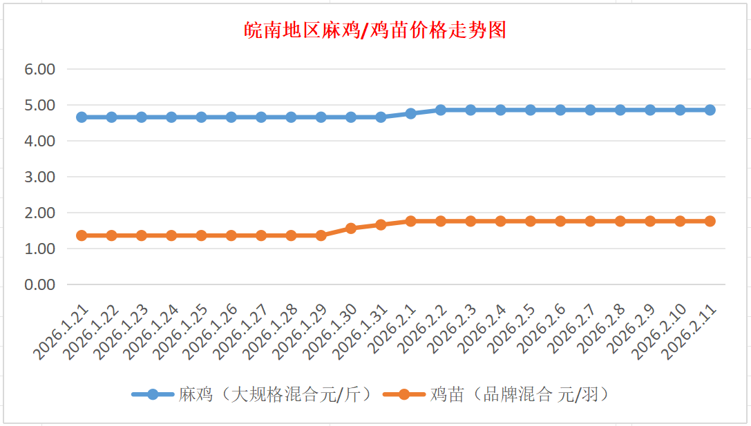 鸡病专业网独家信息:2026年2月11日皖南地区817-麻鸡行情最新走势