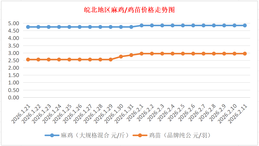 鸡病专业网独家信息:2026年2月11日皖北地区817-麻鸡行情最新走势