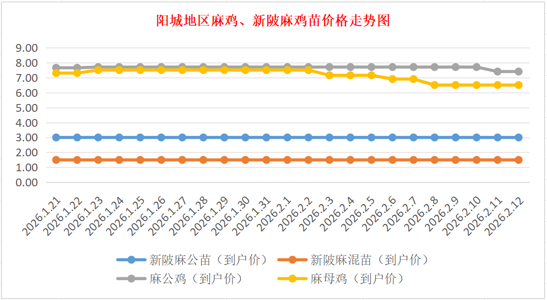 阳城地区麻鸡、新陂麻鸡苗价格走势图(来源:鸡病专业网)