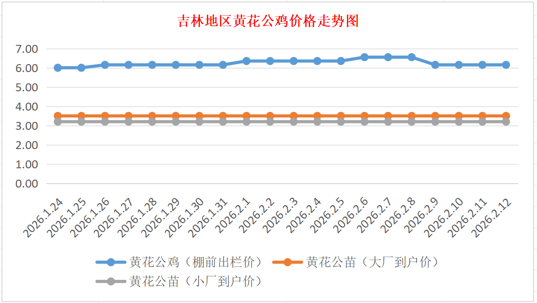 2月12日吉林黄花公鸡、鸡苗价格行情