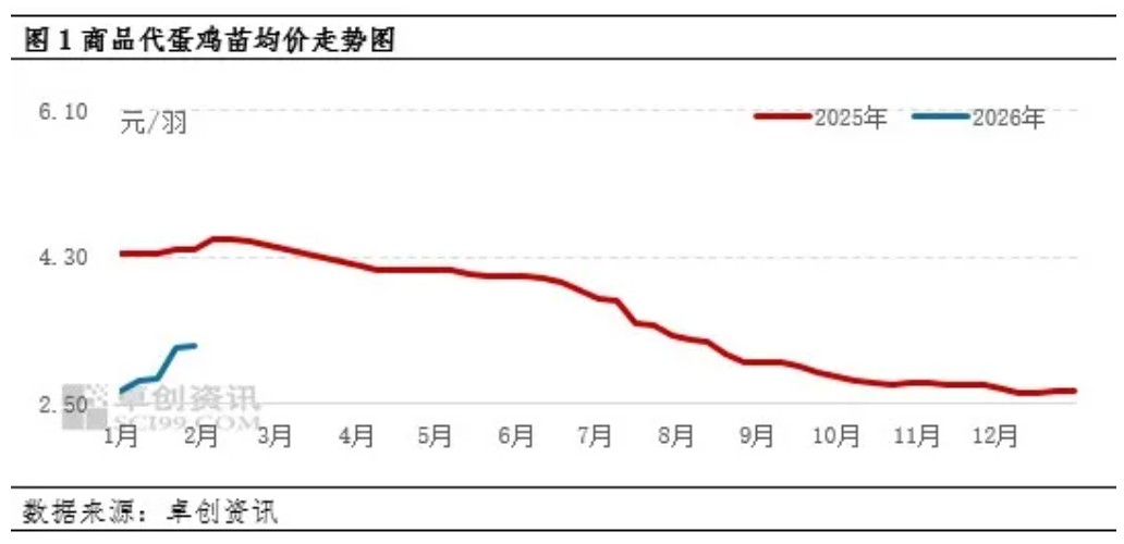 1月鸡蛋市场呈现明显的回暖态势,蛋鸡养殖利润改善,推动了养殖单位的补栏意愿,商品代蛋鸡苗需求升温,价格也随之上涨。后市随着春季补栏旺季的来临,鸡苗市场供需格局呈现乐观迹象,鸡苗价格涨势或将进一步延续。