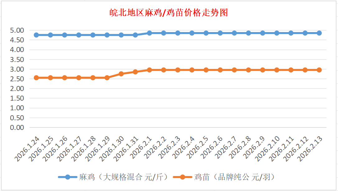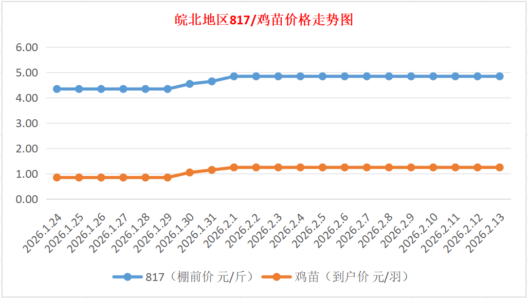 鸡病专业网独家信息:2026年2月13日皖北地区817-麻鸡行情最新走势