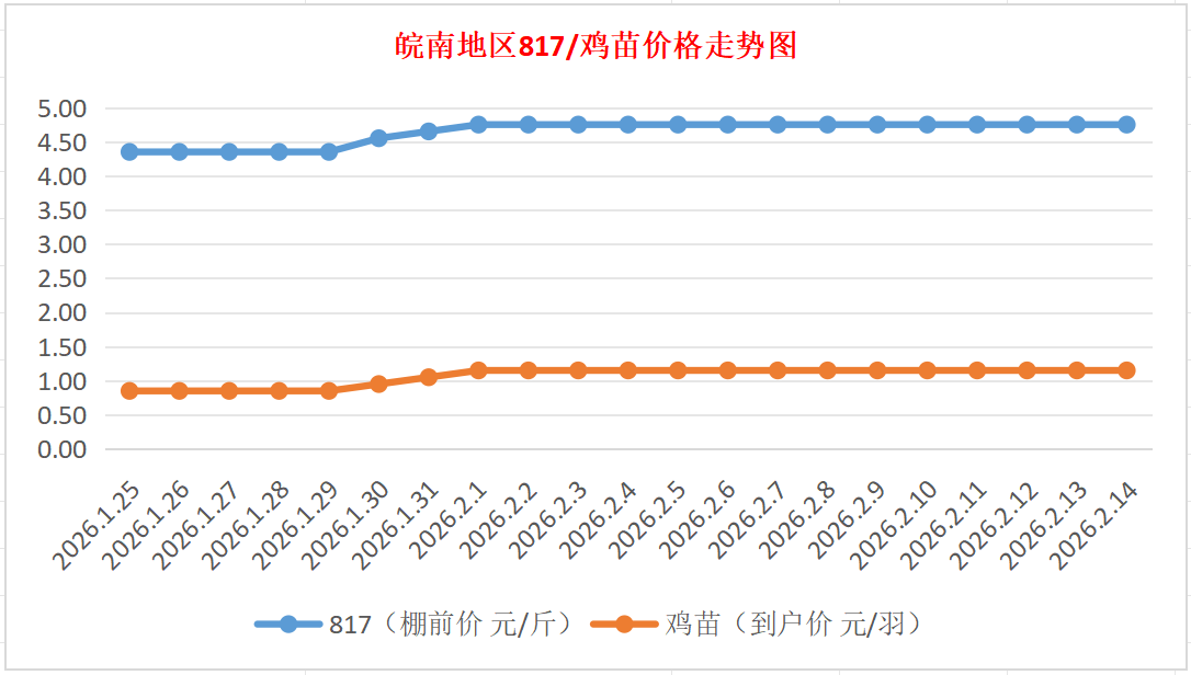 鸡病专业网独家信息:2026年2月14日皖南地区817-麻鸡行情最新走势