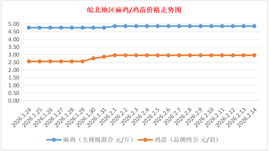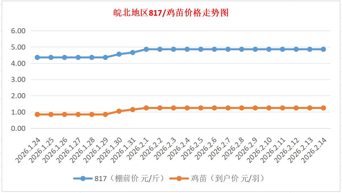 鸡病专业网独家信息:2026年2月14日皖北地区817-麻鸡行情最新走势