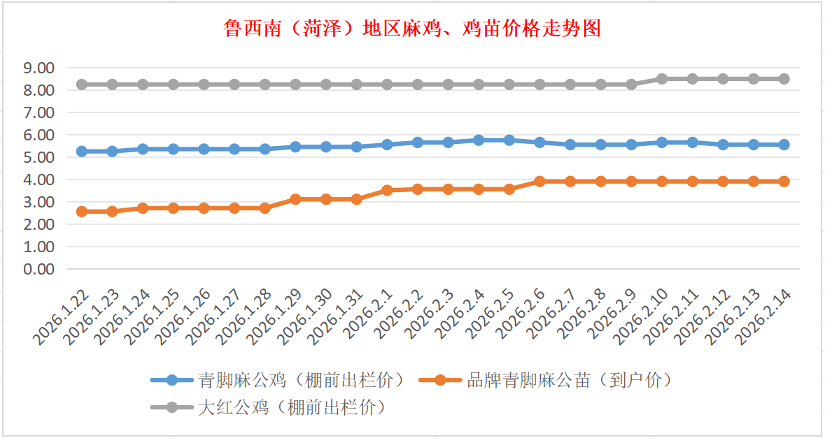 2月14日鲁西南(菏泽)地区麻鸡、鸡苗价格行情