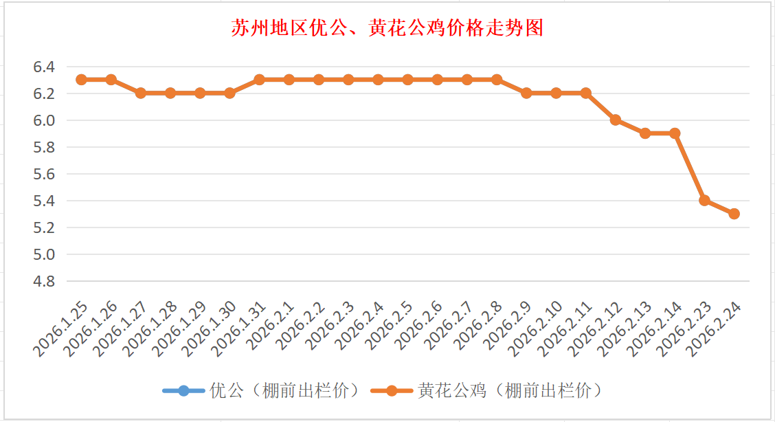 2月24日江苏(苏州)优公、黄花公鸡价格行情