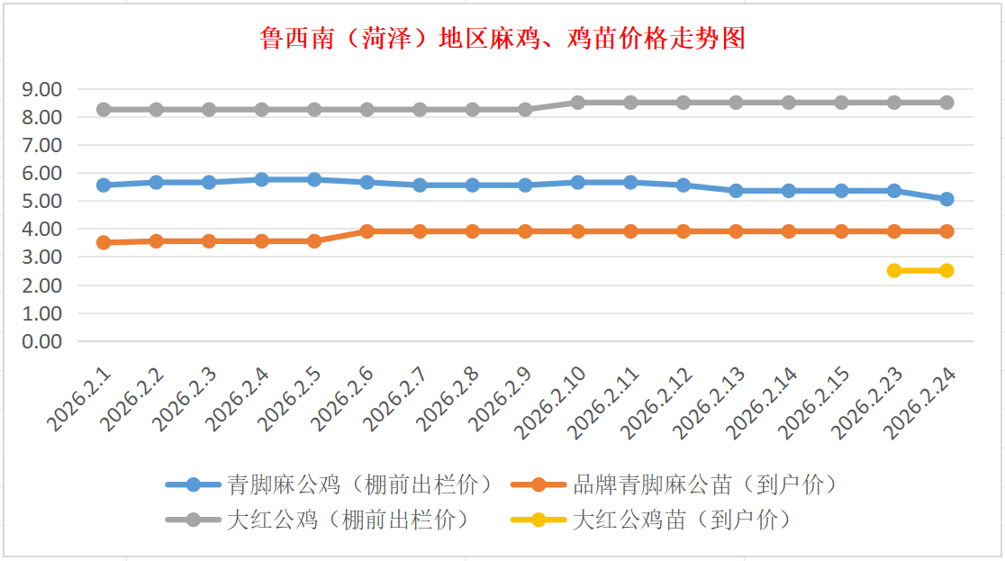 2月24日鲁西南(菏泽)地区麻鸡、鸡苗价格行情