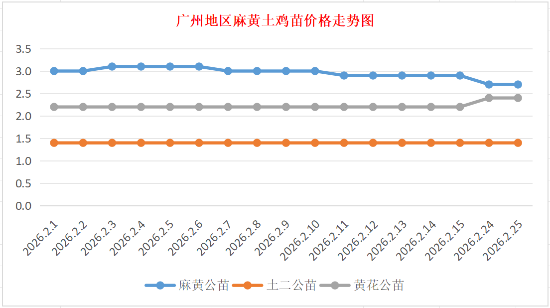 2月25日广州地区麻、黄、土鸡苗价格行情